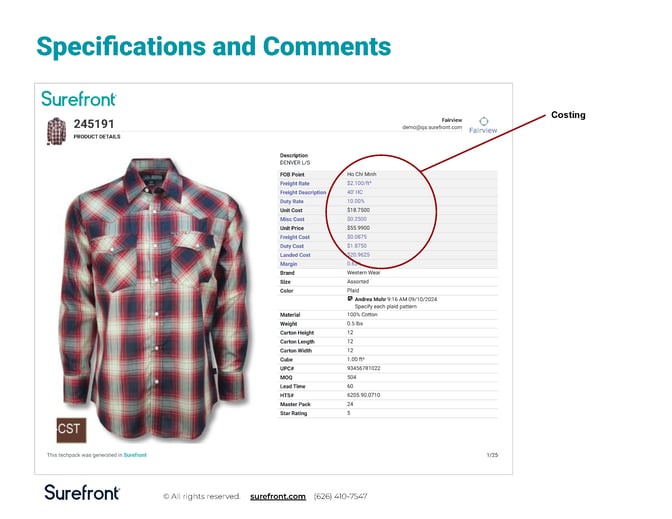 If you want to start generating custom tech pack templates immediately, sign up for a demo account of Surefront. Our software automatically builds tech packs from any product data you import.