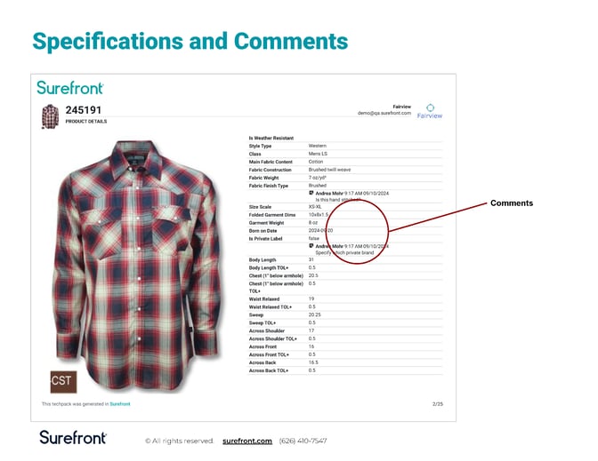 You deserve a platform that supports seamless collaboration. Surefront lets you keep all feedback and communication in one place. Your team can easily share comments and ideas directly in the tech pack, speeding up decision-making.