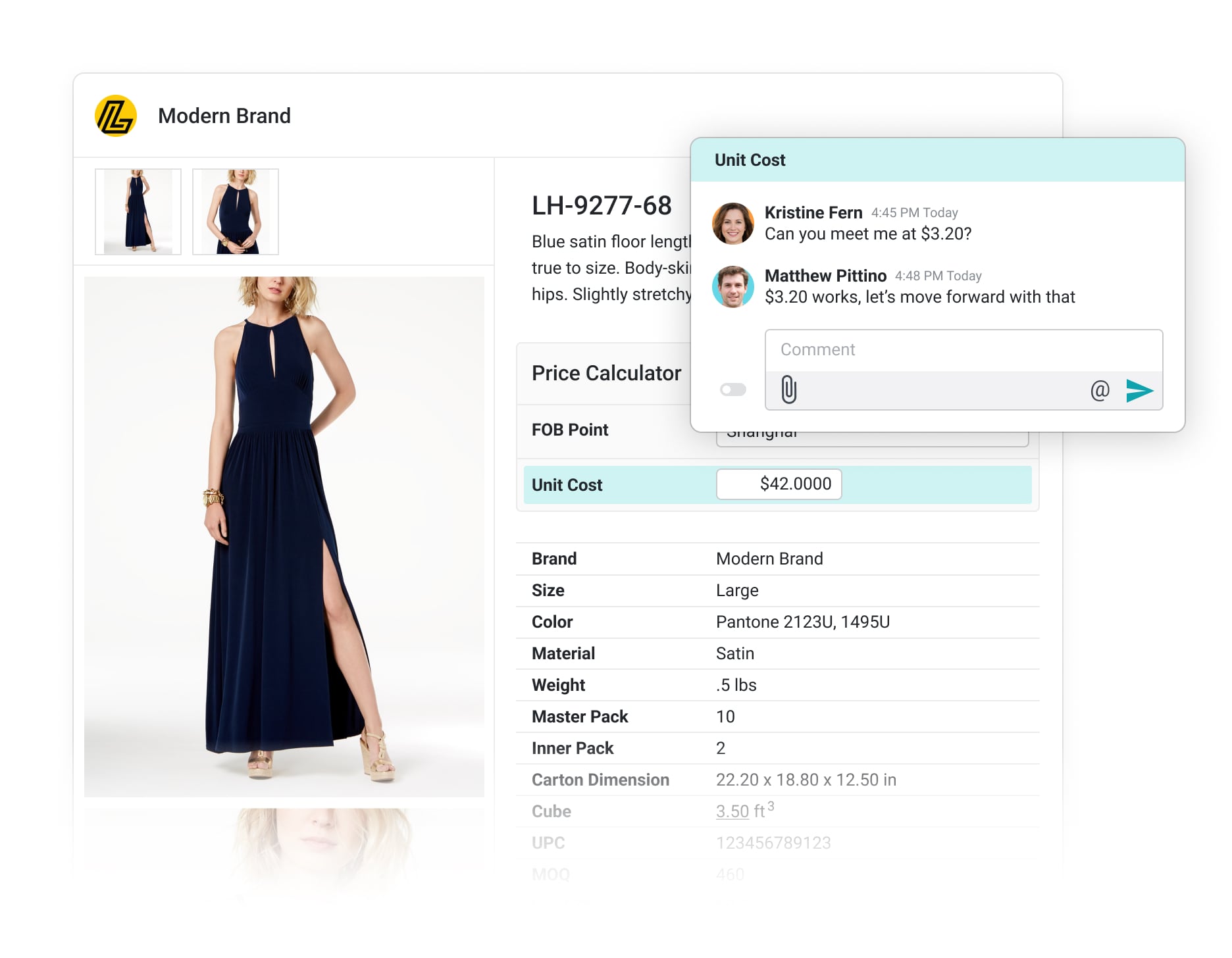• Import specs from Excel and create line sheets in just minutes, reducing manual effort
