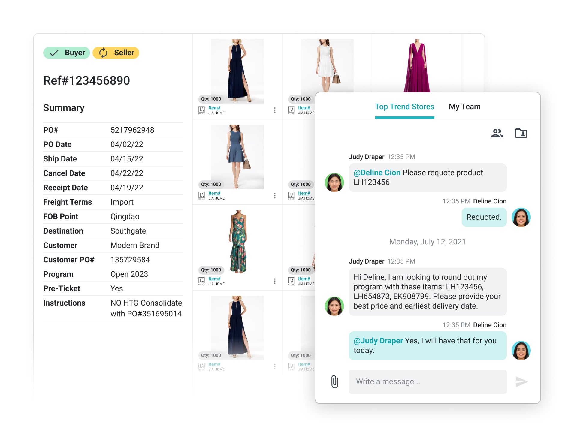 • Enable buyers to review specs, ask questions, and finalize orders on the platform