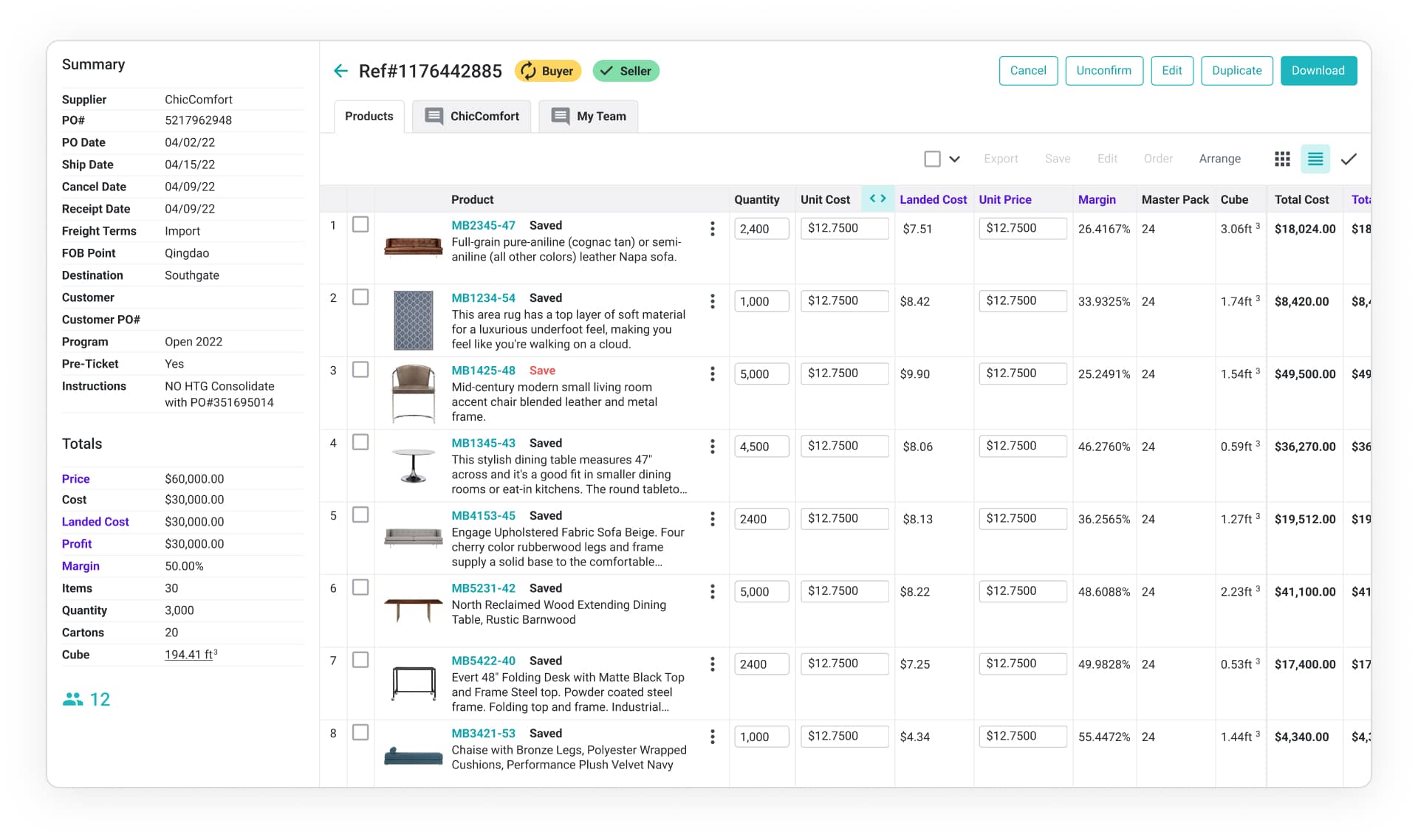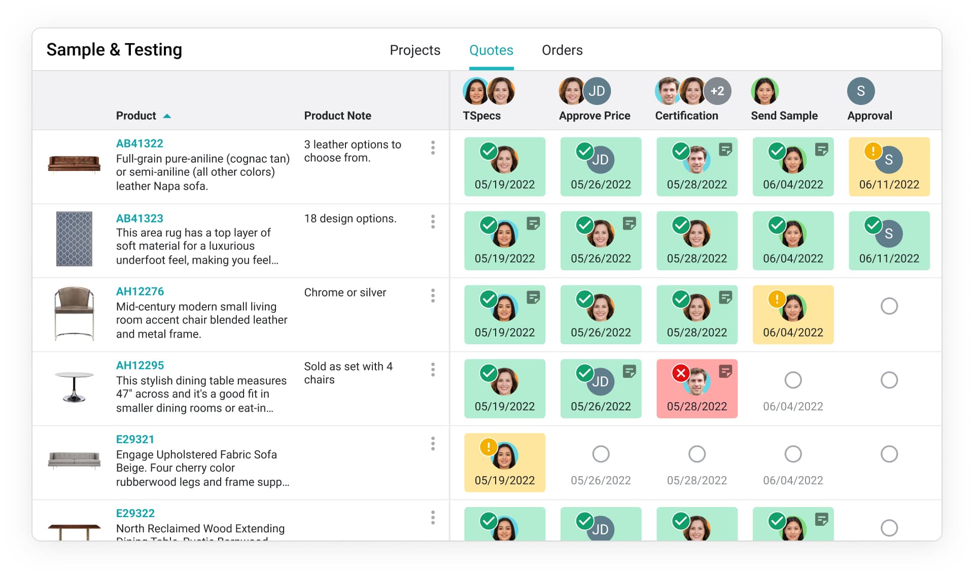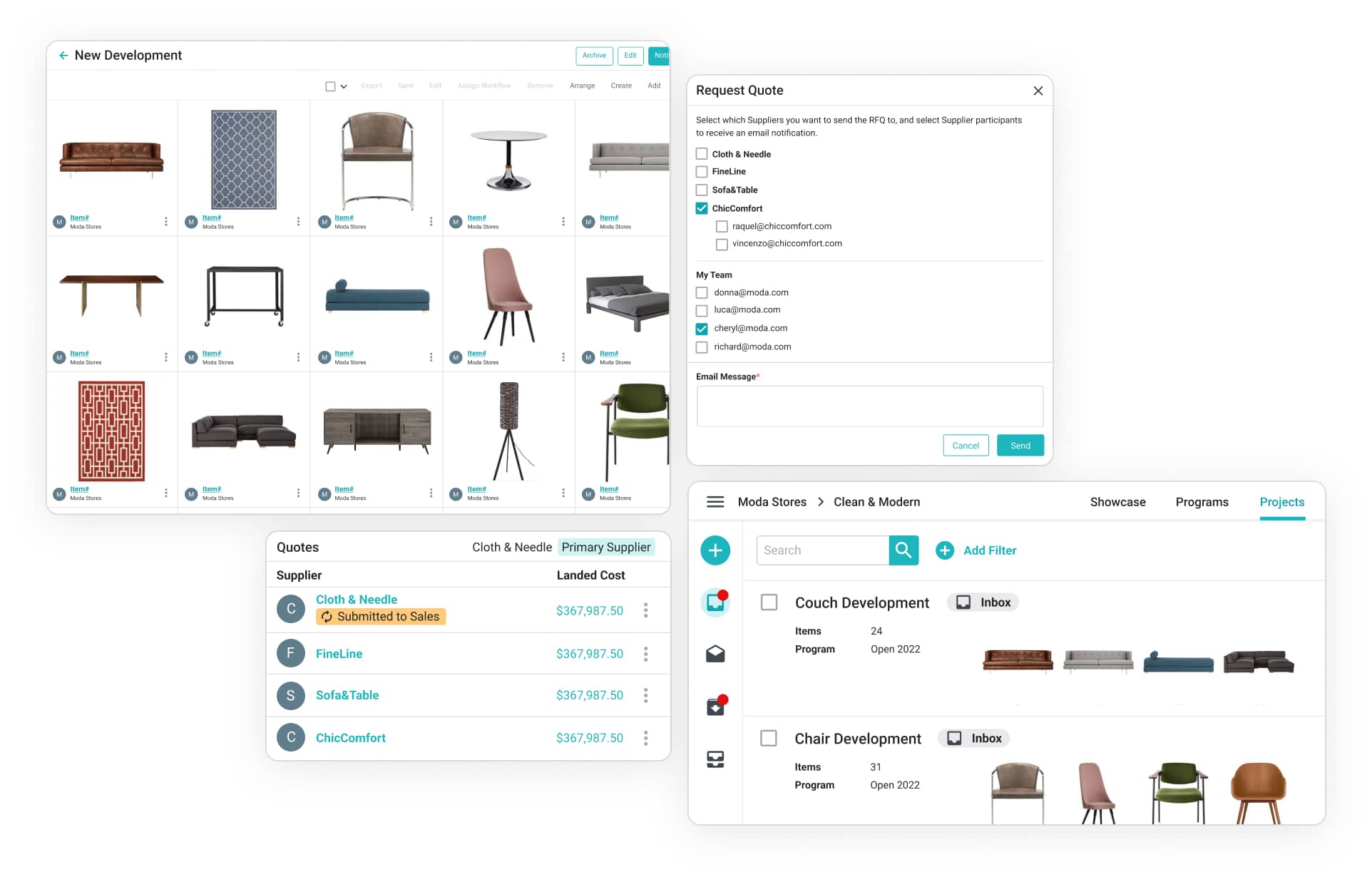 Tech Pack Builder, Bulk Update Status/Workflow Tasks, Product Details/Attribute Communication - enable selling teams to quickly search and highlight products and features from catalogs to present to buyers.