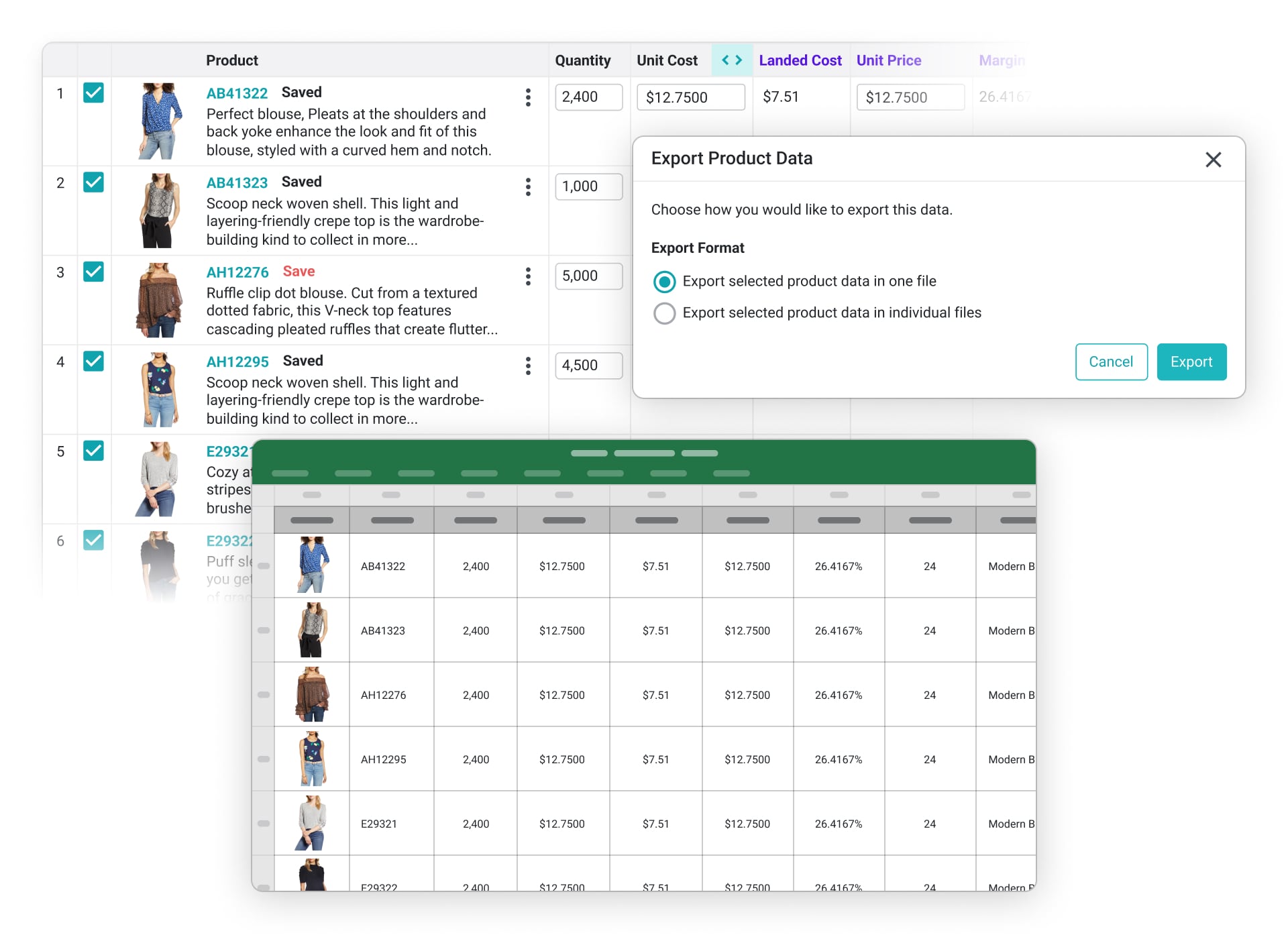 Purchase Order worksheets - allow users to export data in the exact format required by their customers to expedite Purchase Order processing.